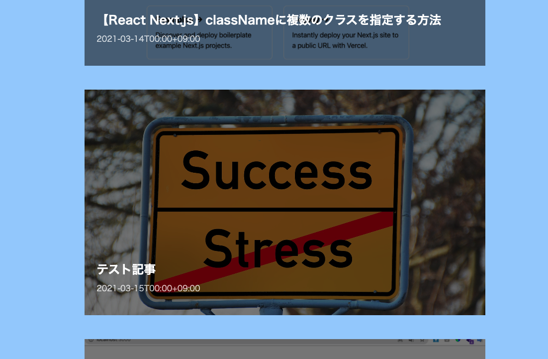 Next.js+Contentfulで記事一覧ページが作成できました。みてくれは微妙ですが…。