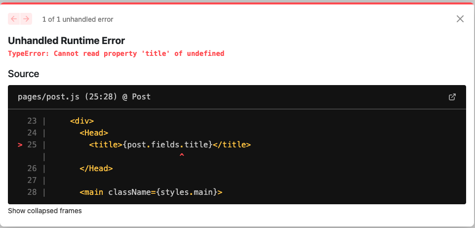 【Contentful】記事単体ページを用意したいが"Unhandled Runtime Error"となってしまった時の解決法