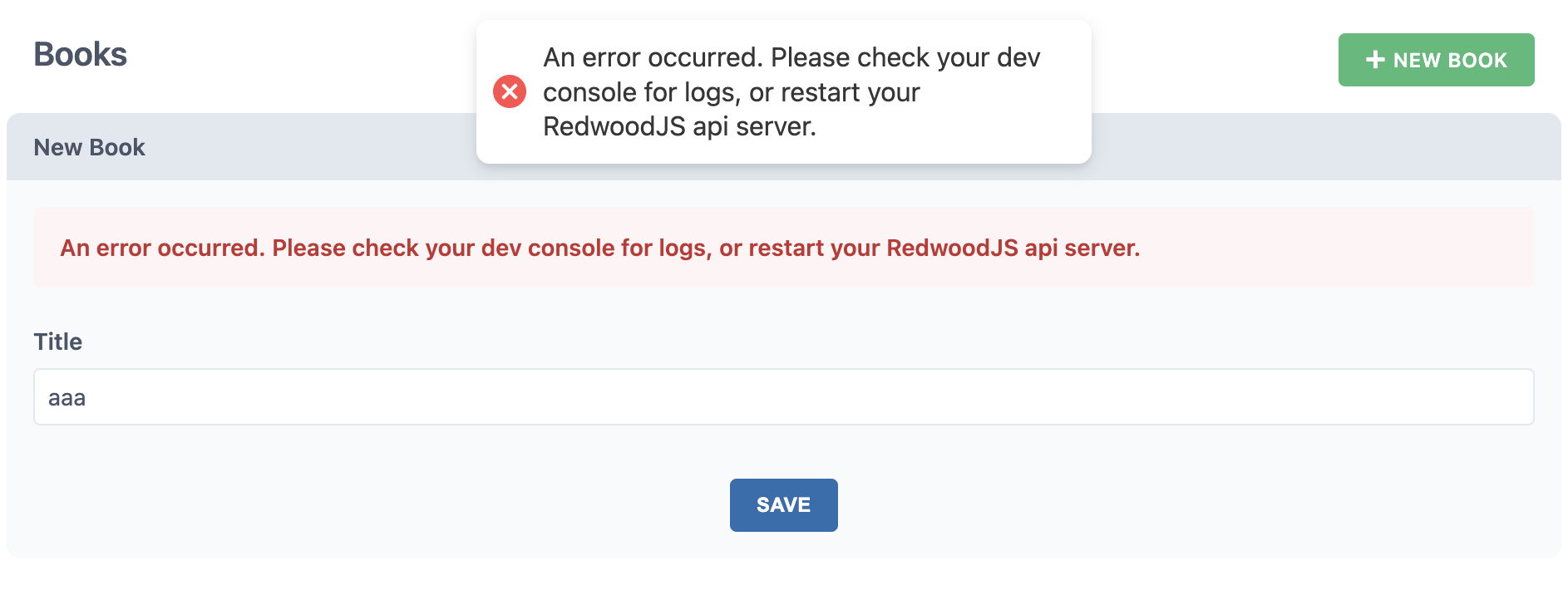 Server側のconsoleを見てみると以下のようなエラーがありました。